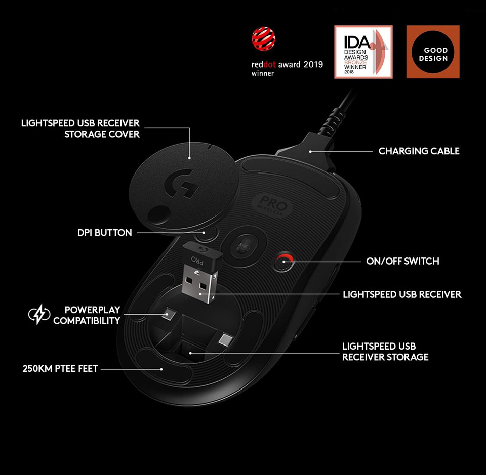 Over 50 professional e-sports players and more than 2 years of direct design input went into the making of the Logitech G PRO Wireless Gaming Mouse, so you know this bad boy means business.